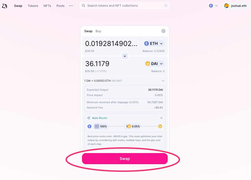 4.批准Uniswap自动路由器交换的代币,如果这是钱包第一次使用Uniswap协议交易该代币,需要先批准该代币,请在此处阅读有关批准交易的信息。