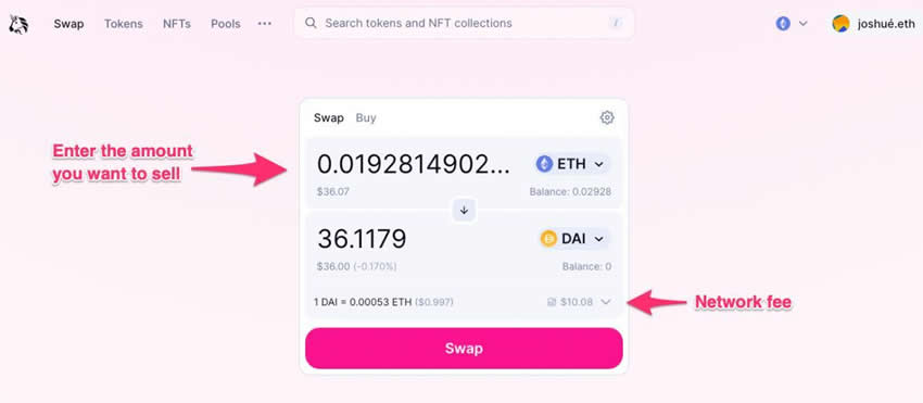 3.输入想要兑换的金额。可以输入所需的输入金额或输出金额。