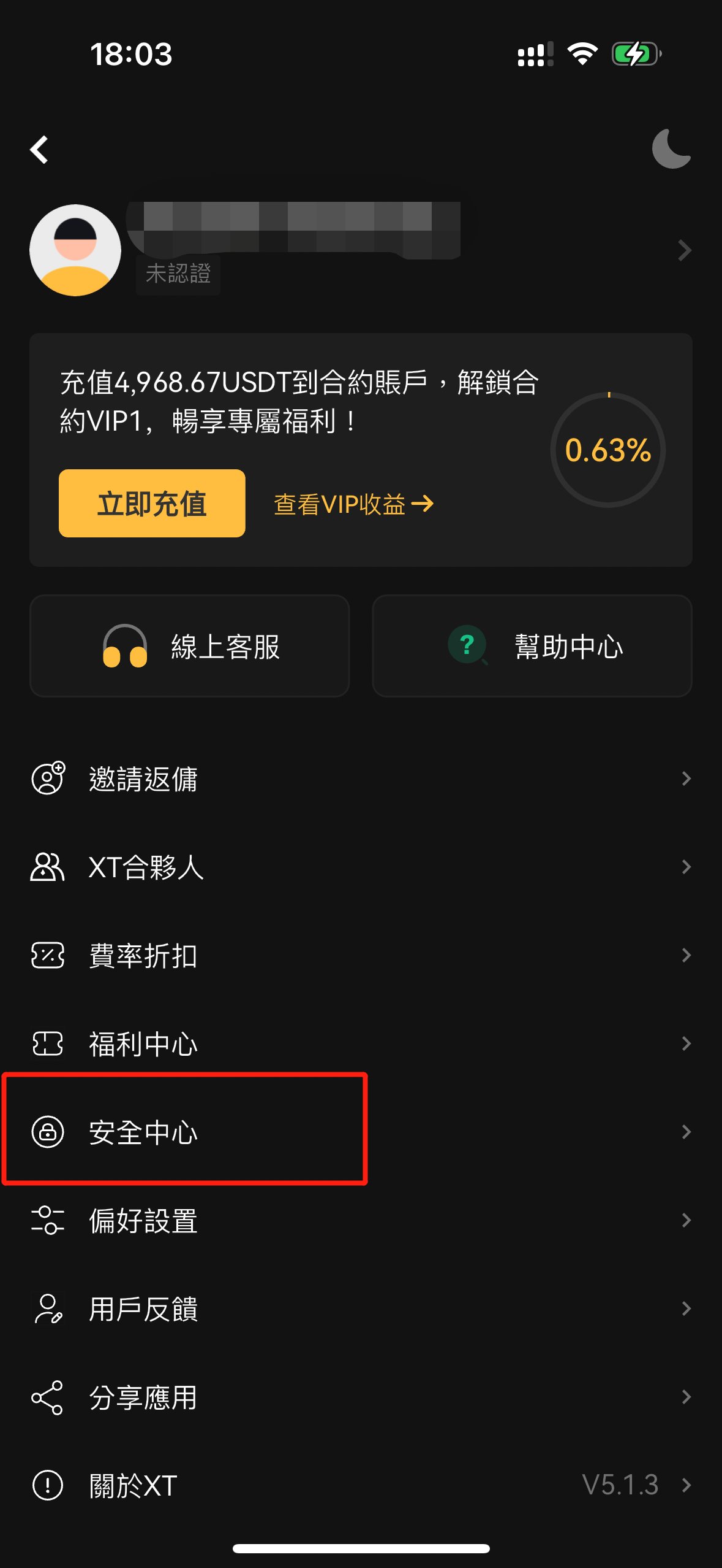 登录 XT App,点击左上角头像进入【个人中心】。