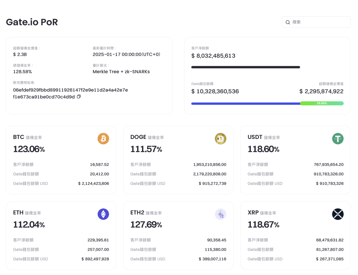 简单来说,Gate.io 的储备金是128.58%,只要超过100% 就是大于用户的存款,也就是说当所有用户都提款时,原则上Gate.io 也不会有流动性枯竭的问题。