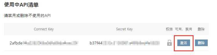 8、API成功激活后即可使用,Secret Key将被隐藏。