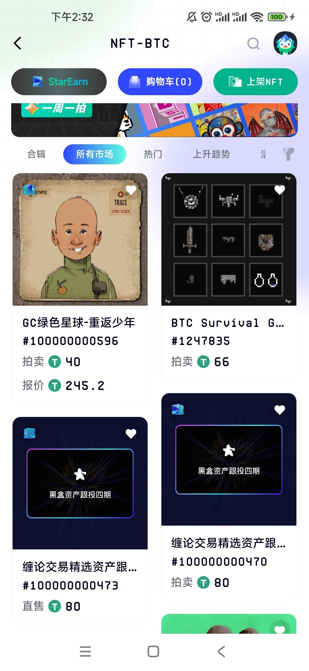 2.点击所有市场,下拉刷新,可看到最新上架的NFT;