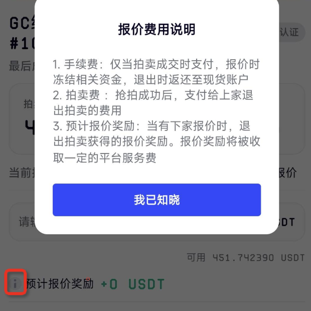 1,关于拍卖报价说明,在第一次进入NFT拍卖交易会出现该提示;