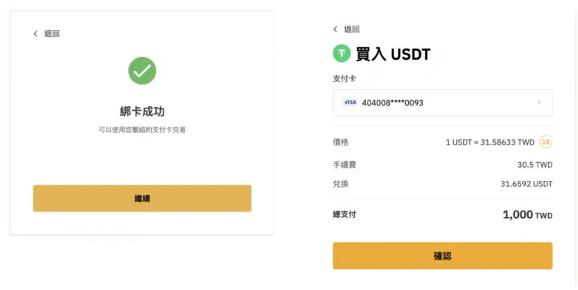 使用快捷买币的优点是,第一次绑卡后接下来要买币就很方便,体验就像信用卡购物一样。