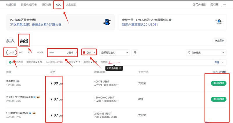用户可以通过上述方法进行提现,下文就以C2C为例进行USDT的提现流程讲解: