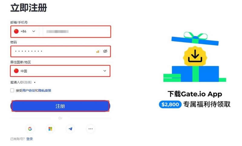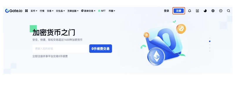 1、登录Gate.io交易所网页端(官方注册 官方下载),点击“注册”按钮,进入注册页面。