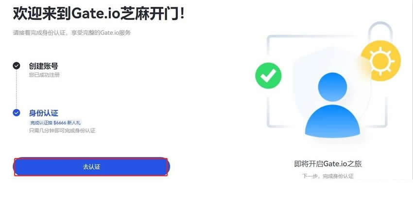 5、验证成功后随即跳转到Gate.io欢迎页面,并进行KYC认证