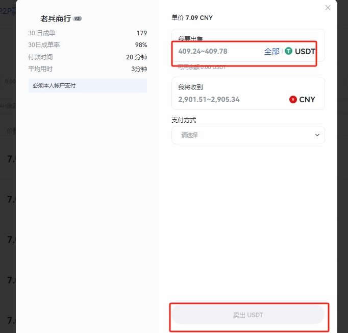 10、在弹窗中输入卖出USDT数量,再次点击“出售USDT”即可