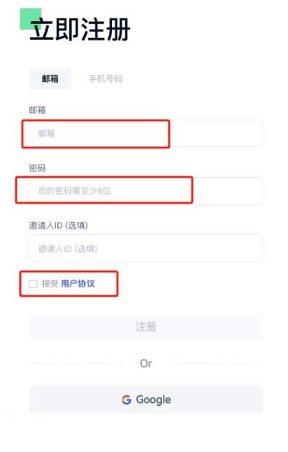 2、在注册页面,根据提示填写信息(邮箱、登录密码等),勾选“接受用户协议”,点击“注册”。